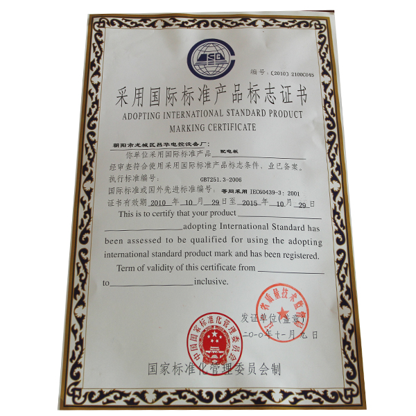 采用國(guó)際標(biāo)準(zhǔn)產(chǎn)品標(biāo)志證書