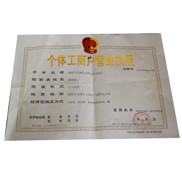 個(gè)體工商戶營(yíng)業(yè)執(zhí)照